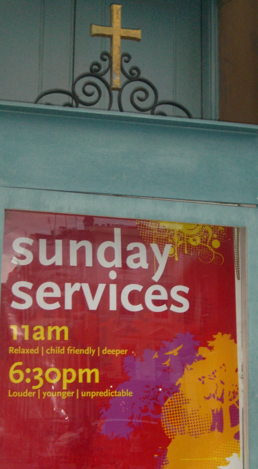 The red sign caught my eye and I had to go closer to read it. The description was so interesting, I thought I might like to attend one of those services: