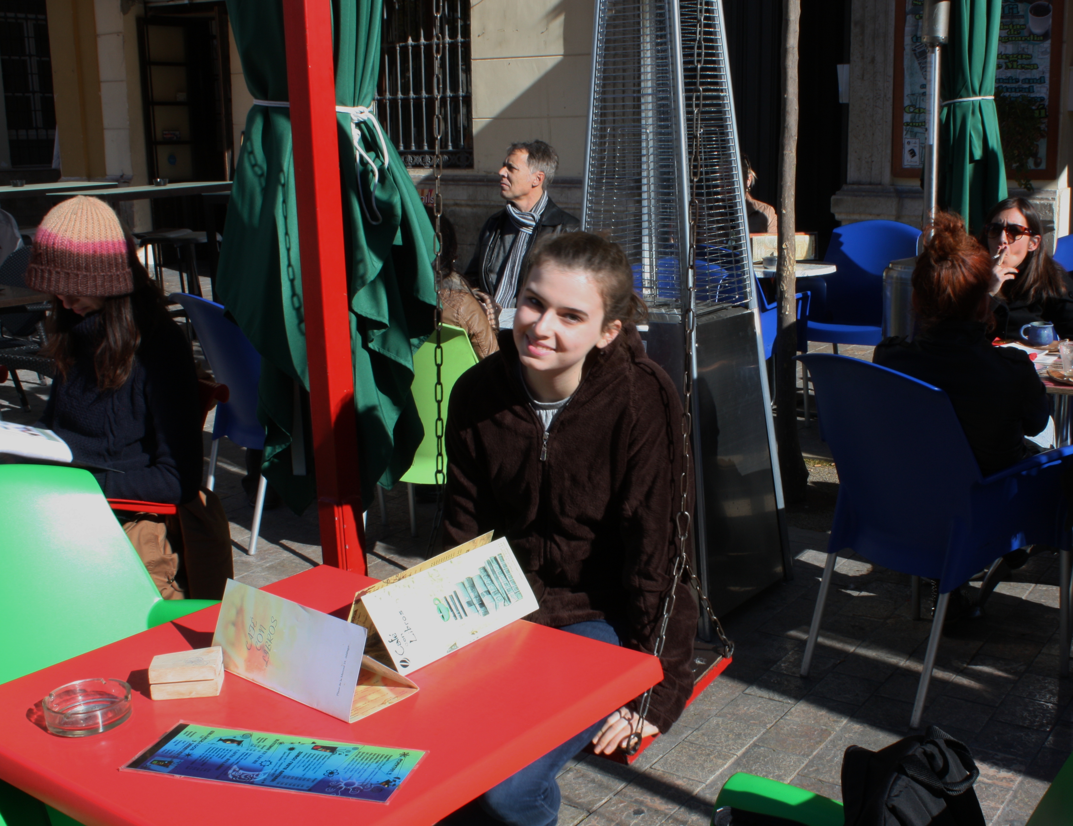 On a swing at “Cafe con Libros” in Malaga