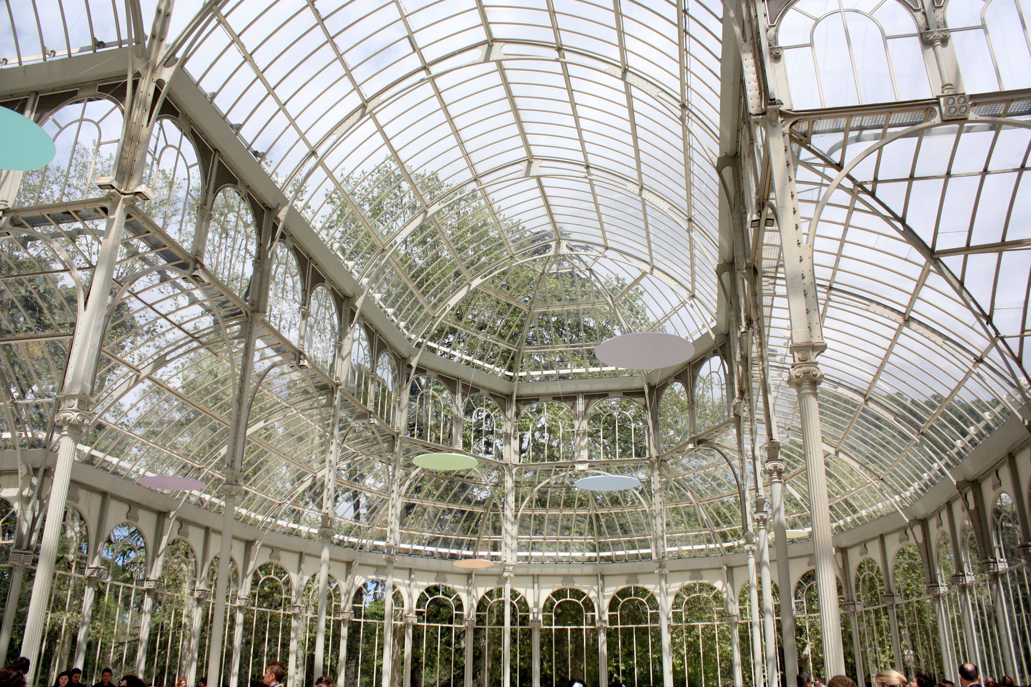Palacio de Cristal ~ the color discs hanging from the ceiling are part of the Modern Art Exhibit